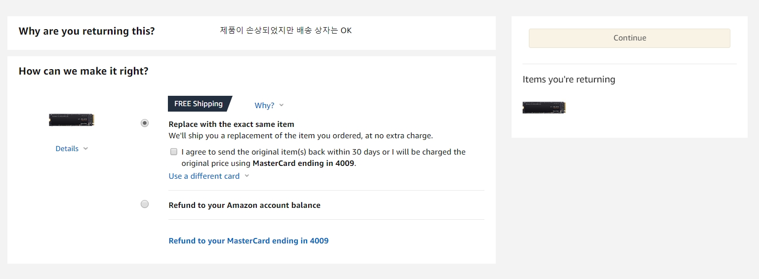 제품을 반품 신청하게 되면 제품의 상태/ 반품 사유에 따라 옵션을 제공해줍니다.